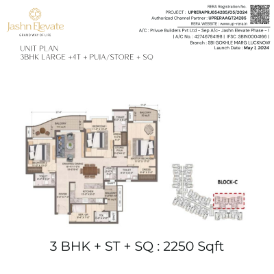 A true highlight of Jashn Elevate is its 22,000 sq. ft. triple-height grand clubhouse, complemented by 56+ world-class amenities. Residents can enjoy a wide range of lifestyle offerings including a multipurpose hall, co-working space, café, entertainment zone, table tennis area, gymnasium, yoga space, EV charging points, creche, departmental store, and much more—curated to support leisure, wellness, work, and community living under one roof. Strategically located in Sushant Golf City, Jashn Elevate places you close to every essential urban convenience. Renowned educational institutions such as GD Goenka Public School, Lotus World Public School, and Anandram Jaipuria School, along with leading healthcare facilities like Medihealth Multispeciality Hospital and Medanta – The Medicity, are just minutes away. Prominent lifestyle and recreational destinations including Phoenix Palassio, Lulu Mall, Ekana Sports Stadium, ISKCON Temple, and HCL IT City further enhance the appeal of this prime location. Excellent connectivity via Shaheed Path, Sultanpur Road, and the Lucknow Outer Ring Road ensures seamless access across the city. Key transport hubs such as Bakkas Railway Station, Charbagh Railway Station, and Chaudhary Charan Singh International Airport are also conveniently located nearby. At Jashn Elevate, experience a distinctive lifestyle where opulence, connectivity, and everyday convenience come together to create a truly elevated way of living in Lucknow.
